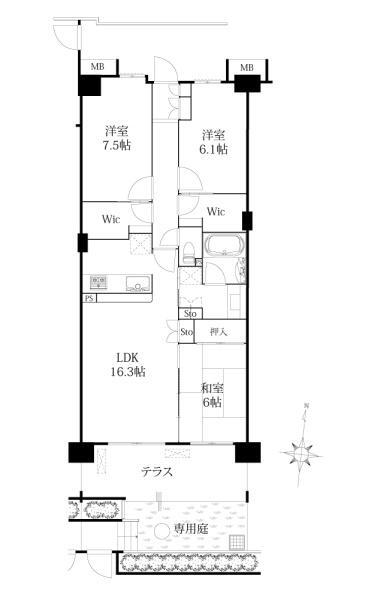 テラス、専用庭付。専用の門扉から専用庭へ出入り出来ます。「平塚」駅より徒歩13分の好立...
